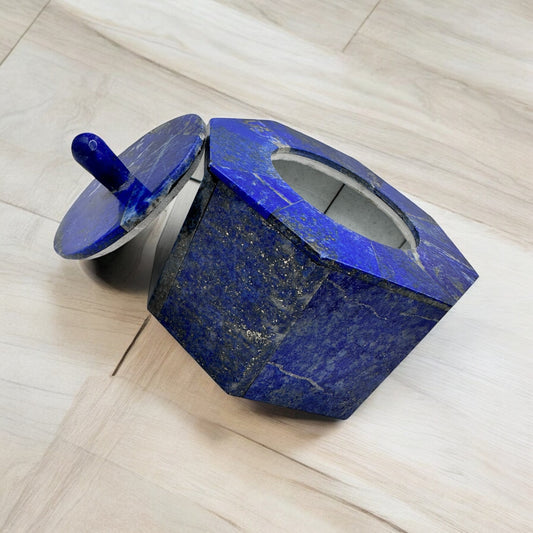 Lapis Lazuli Octagonal Canister with Lid – Royal Blue Stone (4.5” x 3.5”) | Handmade Afghan Gemstone Box