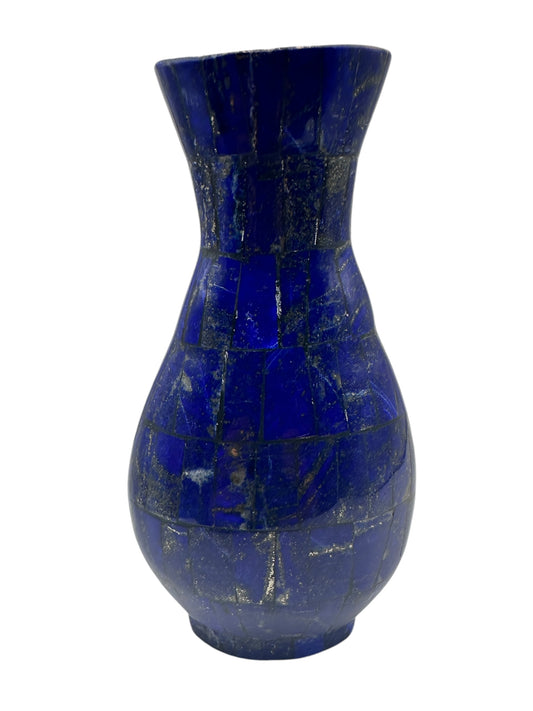 Lapis Lazuli Round Vase 7” x 3.25” – Royal Blue Afghan Gemstone Vase